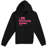 "God Says" I Am Fearfully Made Black Hoodie "Charity Pink"
