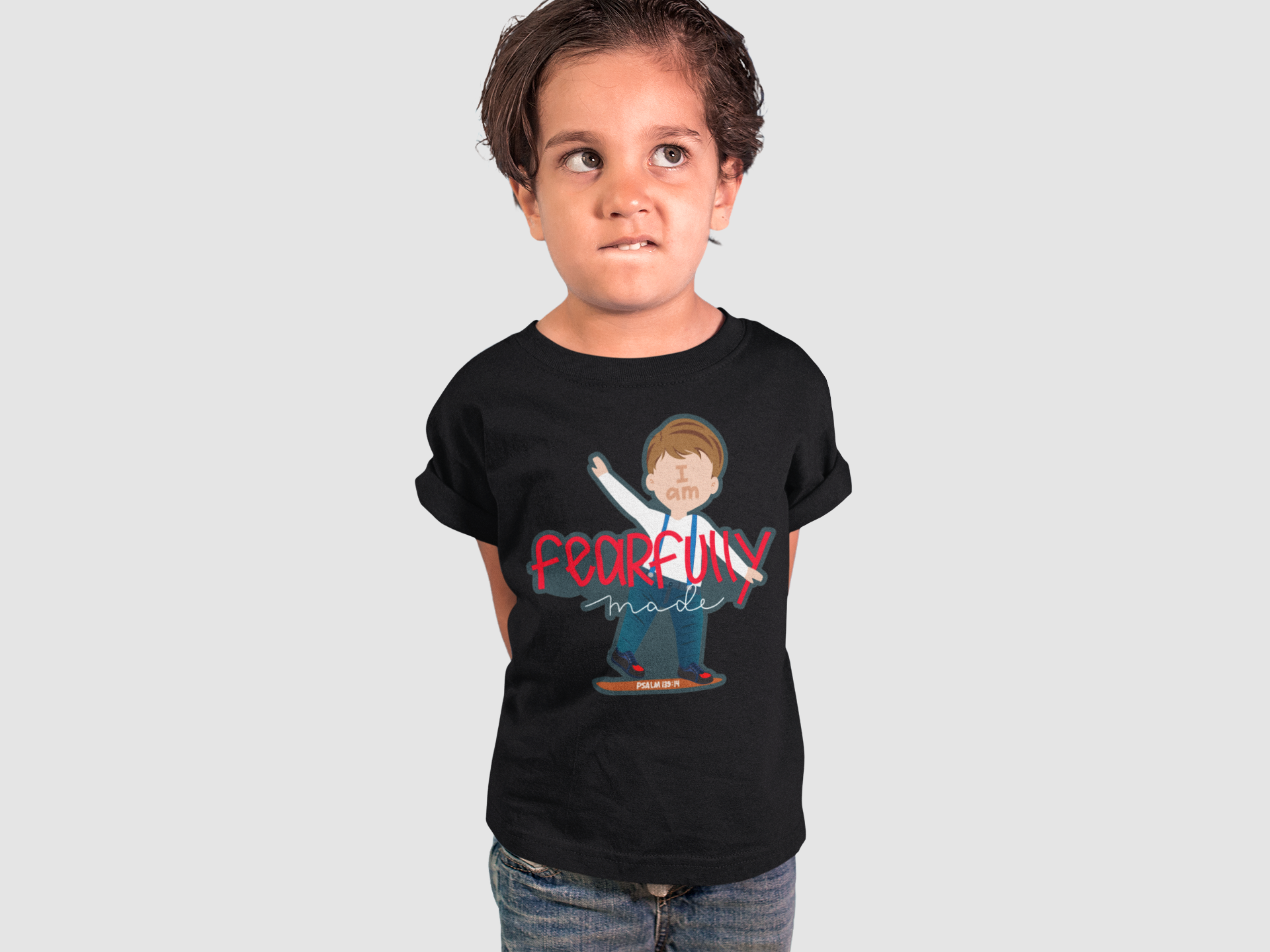 The "I Am Fearfully Made" Tee is inspired from Psalm 139:14. Crafted with care, each tee features an array of characters representative of children all over the world. Made from high-quality, breathable fabric, our tops are designed to withstand all the rigorous activities your child loves. The "I Am Fearfully Made" Tee is more than just clothing; it's a declaration of knowing how important you are to God and empowering wearers to embrace that they are fearfully and wonderfully made.